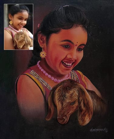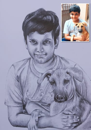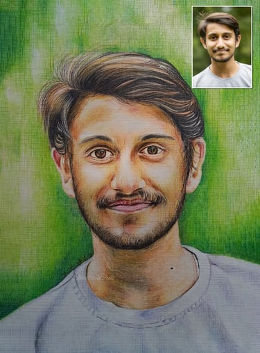 We create your portrait in black & white, color pencil, or oil on canvas — crafted with care, capturing your true essence in every stroke.